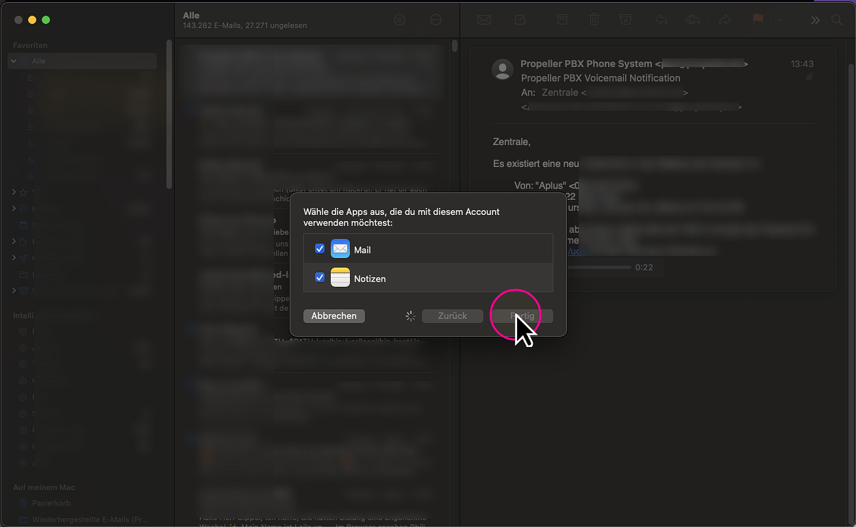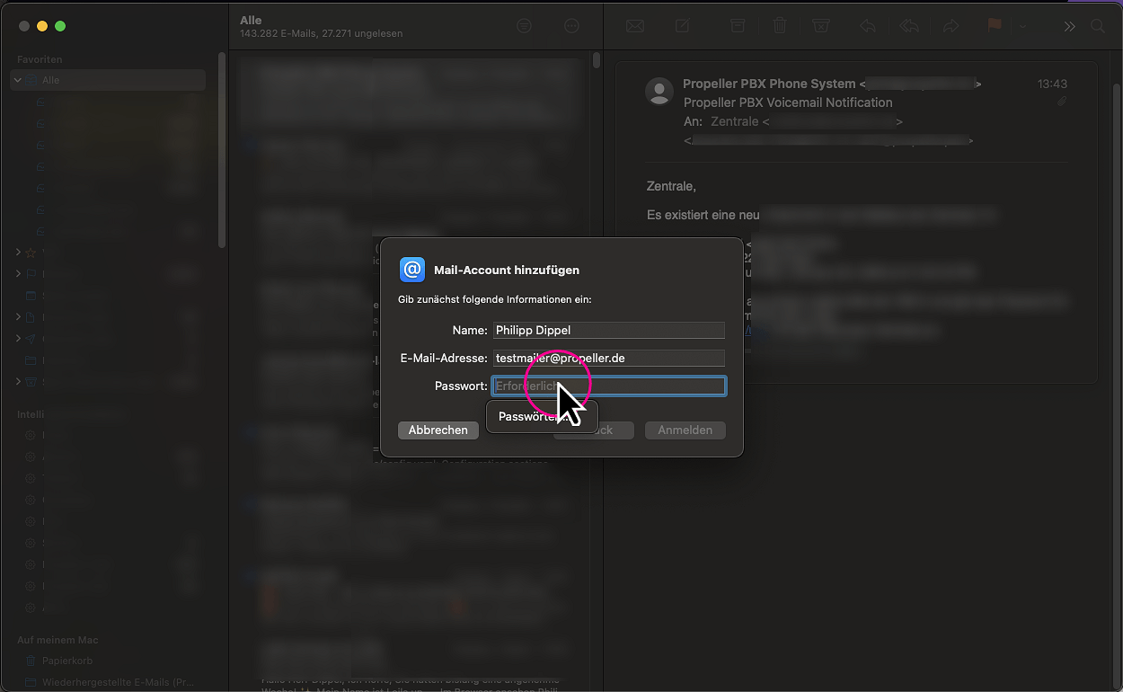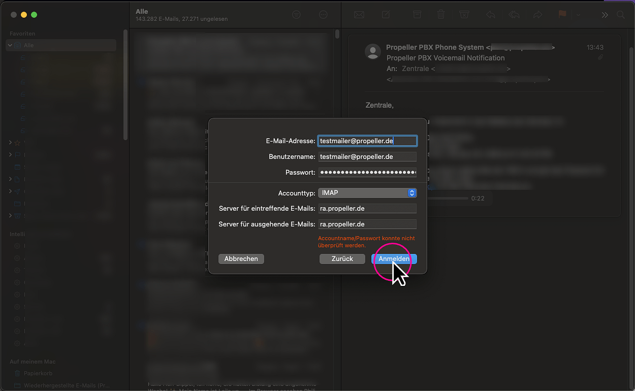 Einrichtung eines propeller-Postfachs in Apple Mail