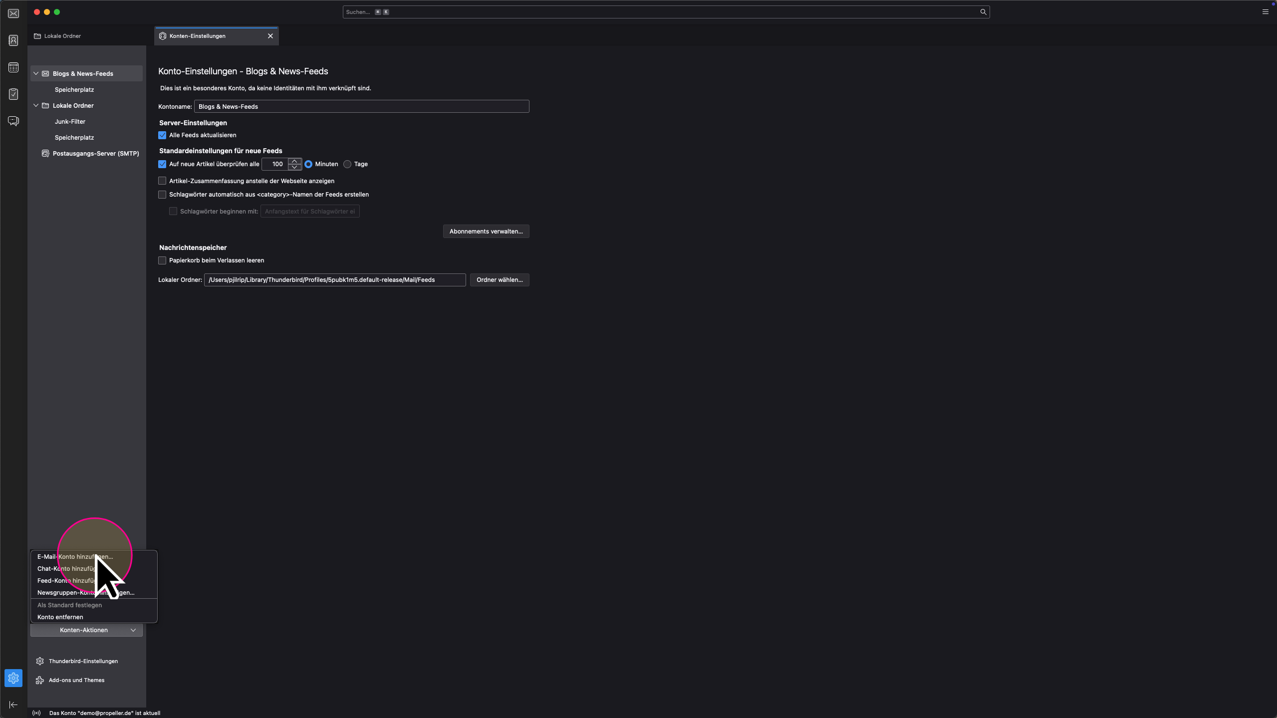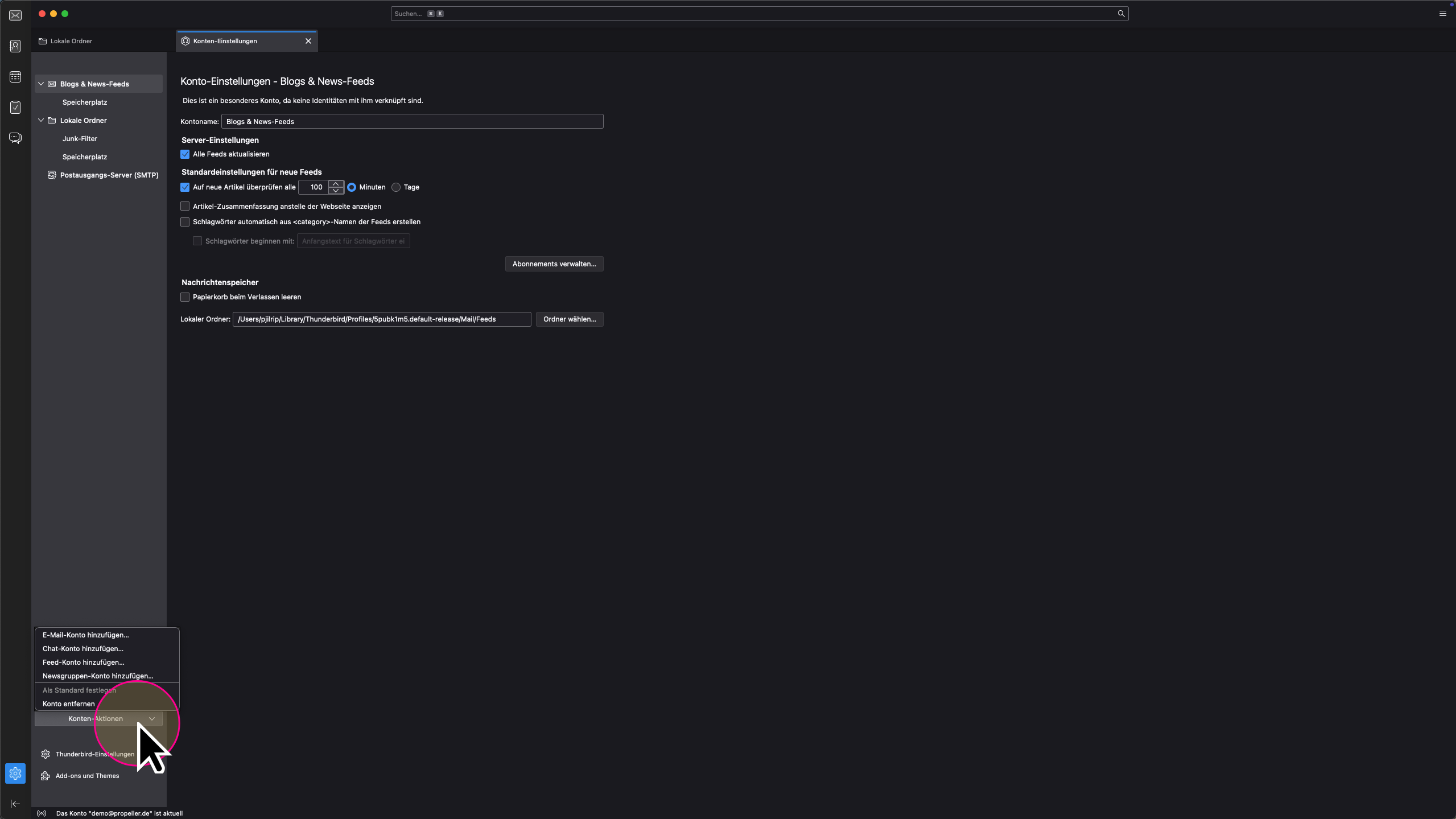 Als erster Schritt muss auf die Konten-Einstellungen gegangen werden