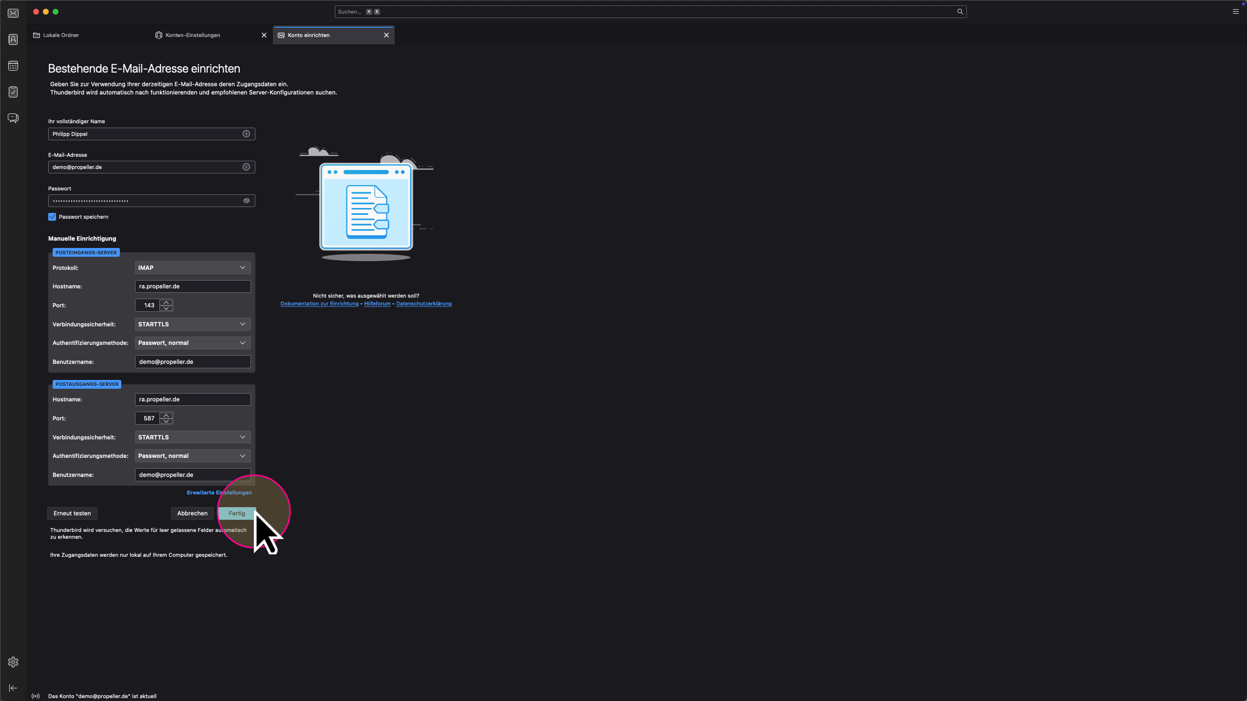 Mit Klick auf "Fertig" ist das Konto eingerichtet.